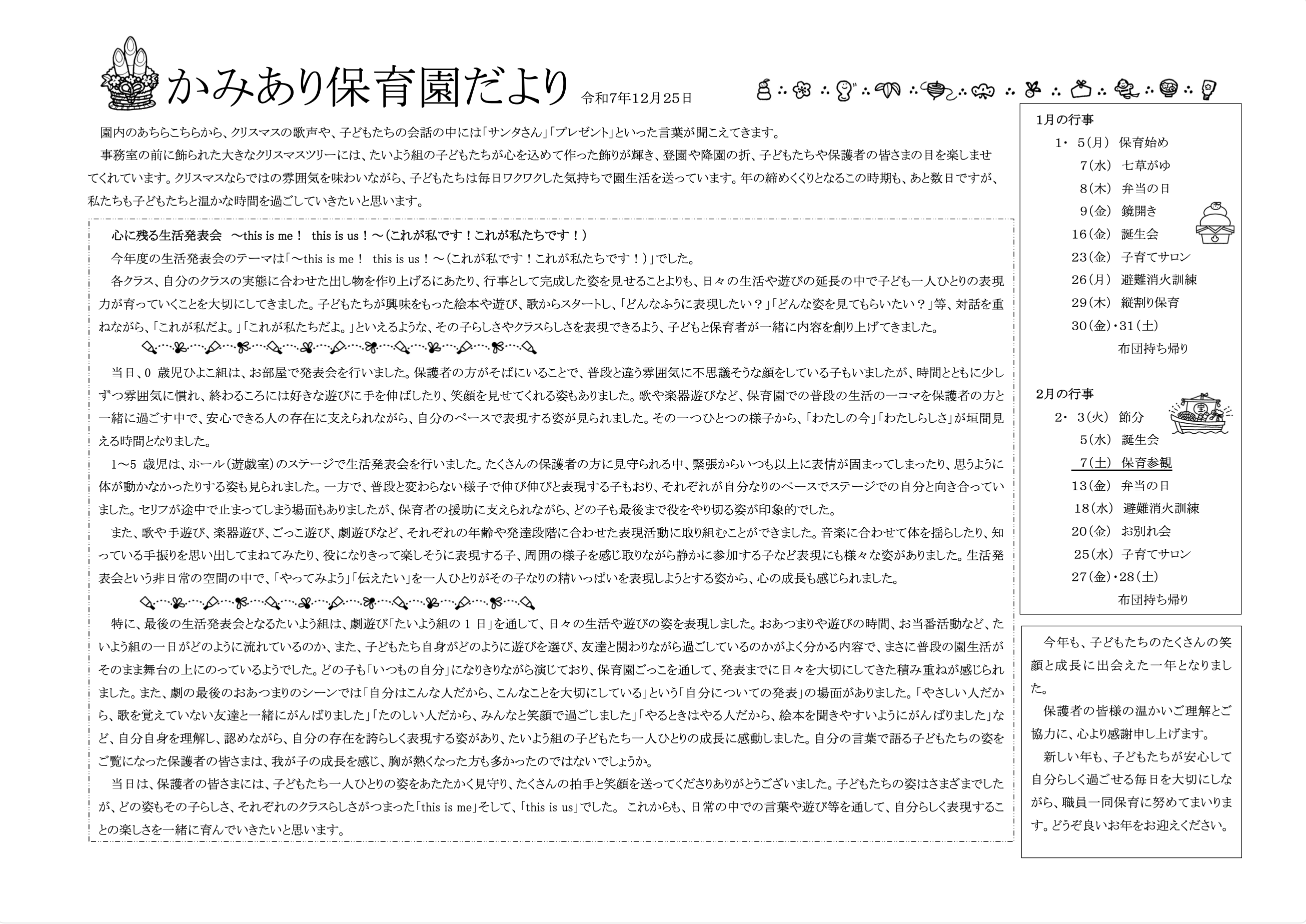 R7クラスだより1月号